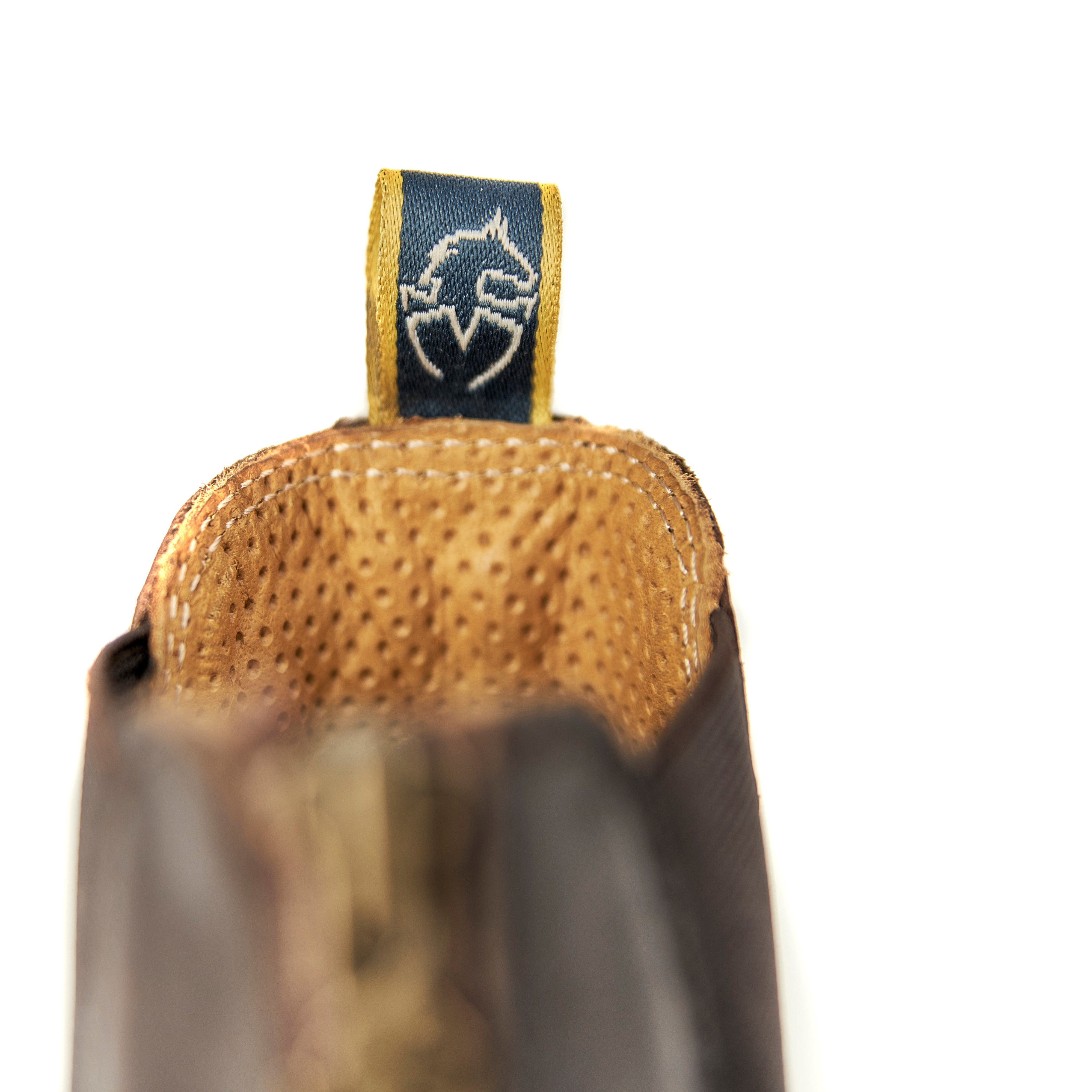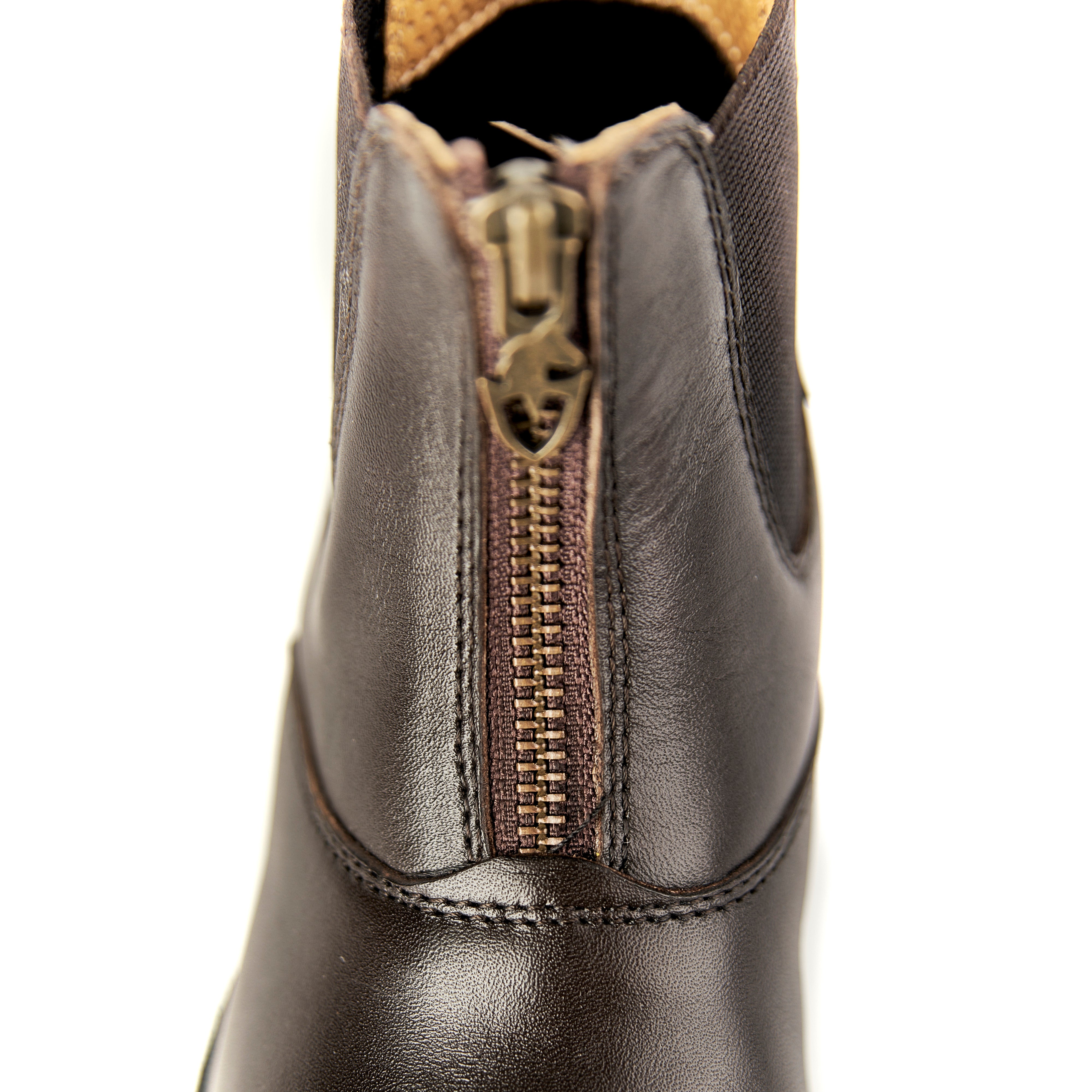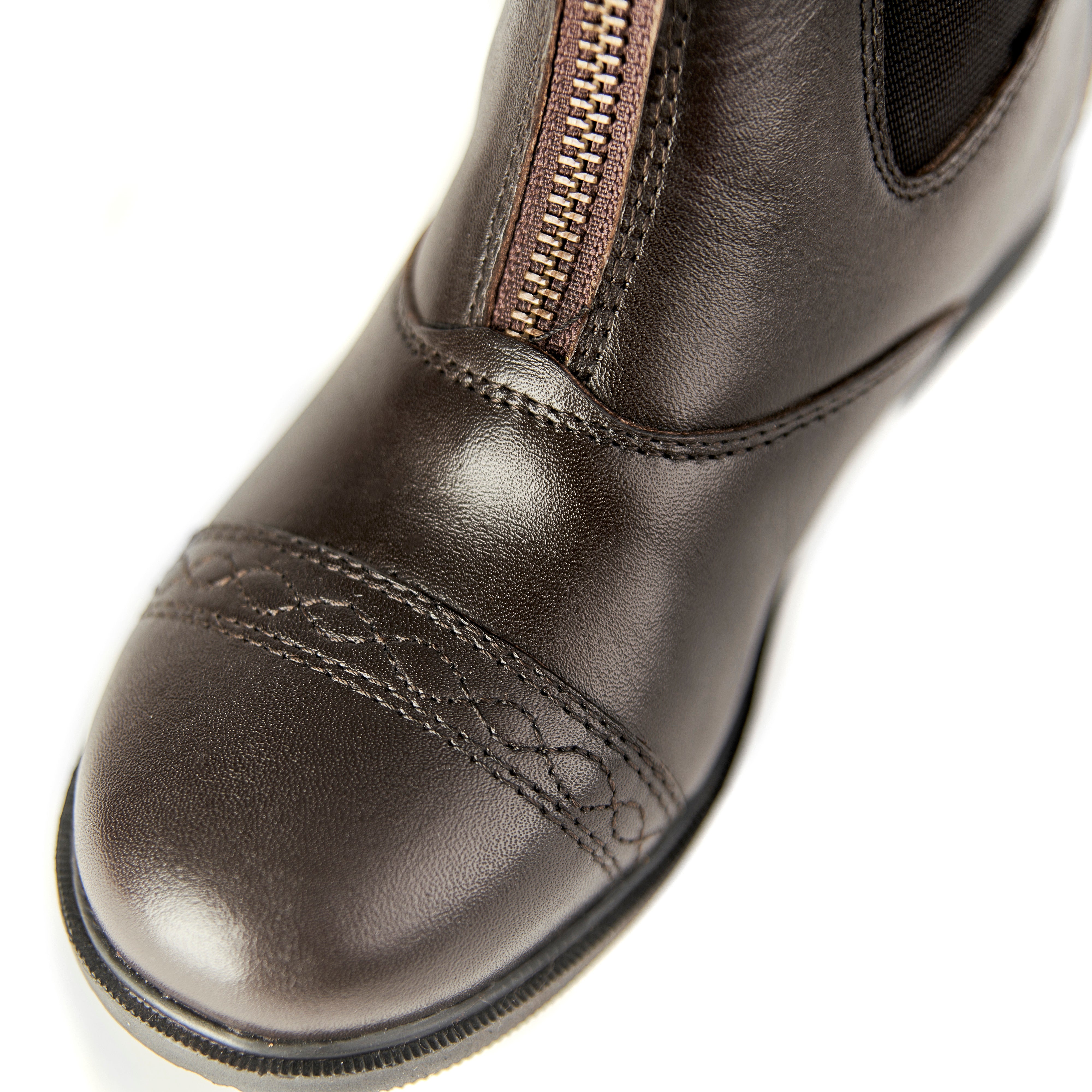 Smarten up for pony riding, these leather paddock boots are suitable for all riders, and offer a great balance between comfort and stability. The Materia zip front boots are easy to fit and have a rounded toe for plenty of space. Brogue stitching detail looks smart and the high shine polished finish resists water stains and a quick polish will restore any wear and tear. Key features: Full grain leather. WickAway stay dry linings. UltraFit ankle inserts. Stabilising footbed. Moretta shock absorbing rubber soles.