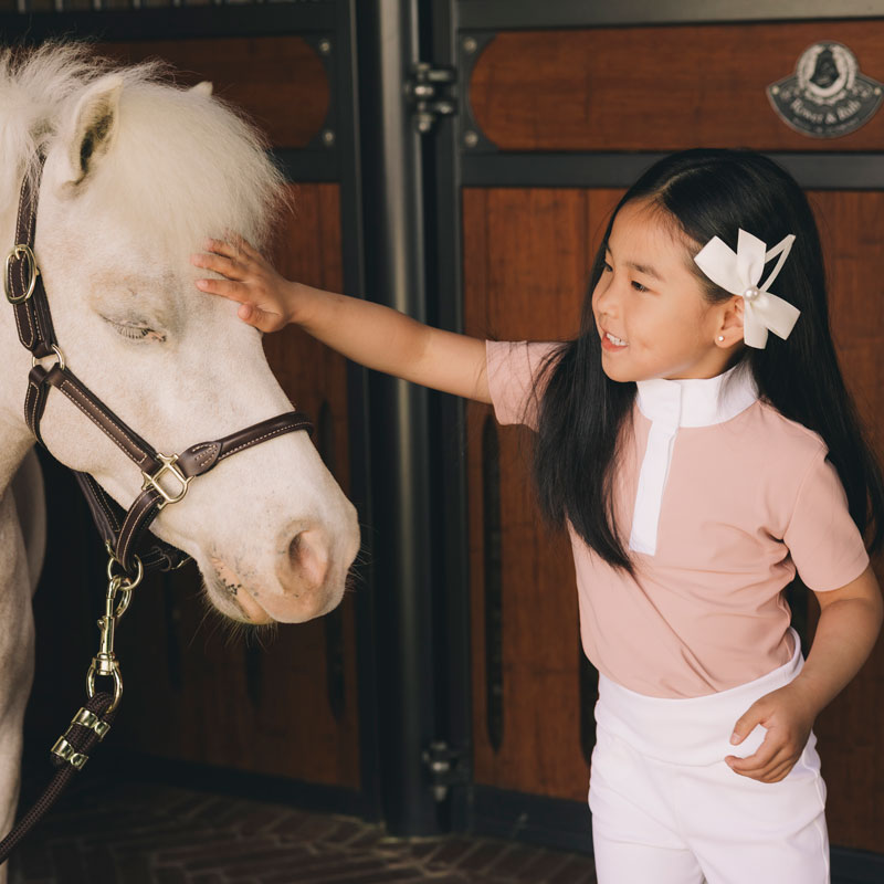 This short sleeve show shirt combines technical performance with understated elegance. The clean white collar and minimalist Kentucky branding keep the look refined, while the Sammy pony logo with glitters adds a fun, stylish detail.