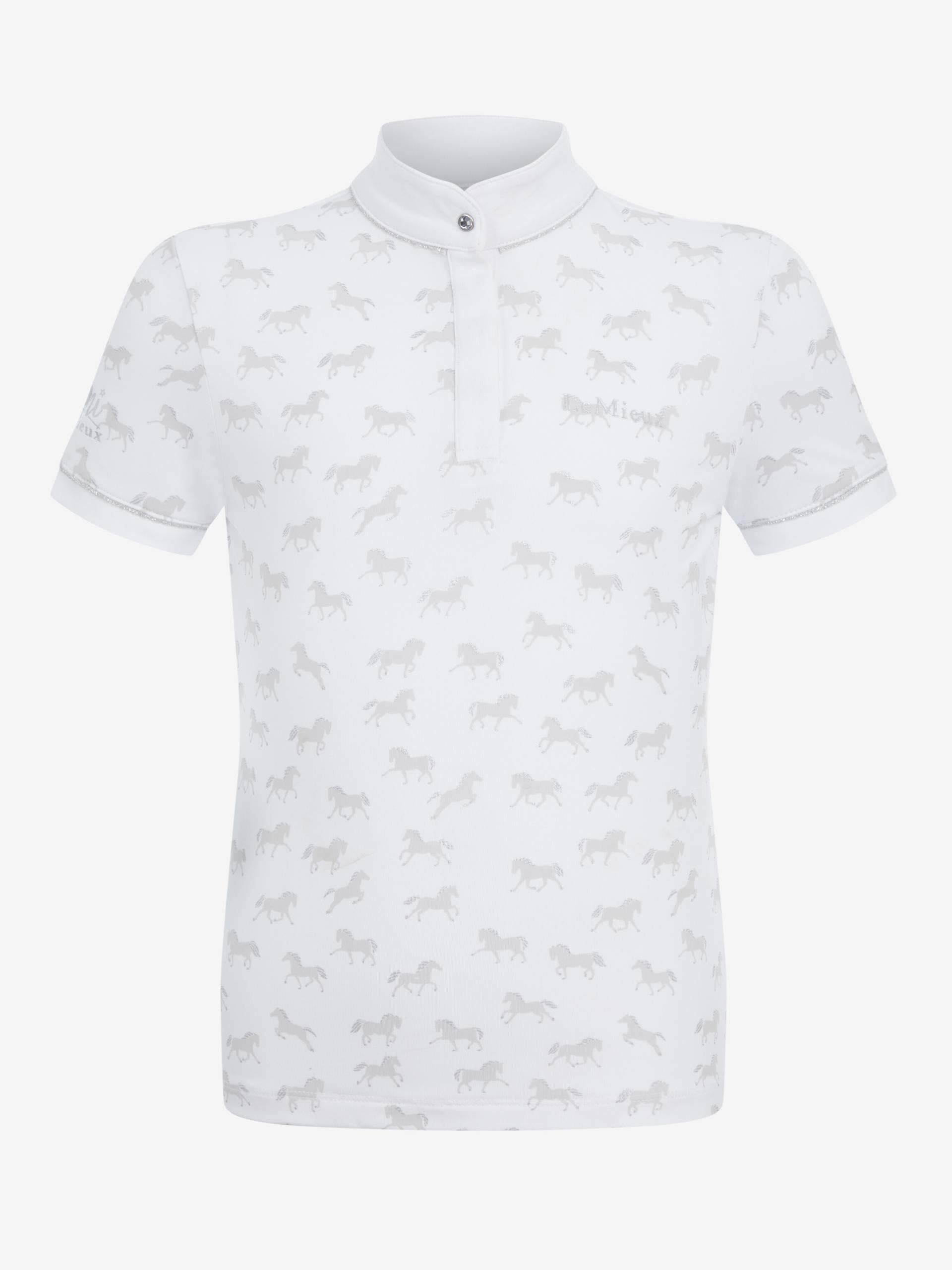 Get ready for their first competition experience in this beautiful quality, smart and comfortable show shirt. Choose from white with a sparkly all-over horseshoe print, a pony print or pretty Blossom pink.