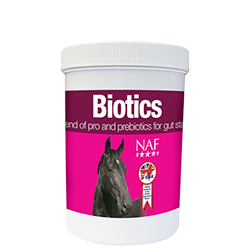 This unique combination of pre and probiotics is designed to support the natural microbial repopulation of the gut. Contains live yeasts which are proven to support the health of the horse's gut. The prebiotic ingredients are fructo-oligosaccharides, which support the growth of micro-organisms in a natural, sustainable form within the digestive tract, thus allowing beneficial bacteria to proliferate over harmful bacteria. Furthermore, fructo-oligosaccharides are non digestible by enzymes and therefore reach the hind-gut safely. The probiotic ingredients are present as encapsulated live yeast cultures. These are bile resistant and therefore have the ability to pass unharmed through the stomach to reach the large intestine. Here, they work in synergy with the prebiotic ingredients to support healthy, natural and normal digestive function. Biotics is an ideal formula for hard working competition and performance horses, horses recovering from antibiotic therapy and young foals prone to diarrhoea, all of whom can be susceptible to microbial upset and consequently digestive imbalance.