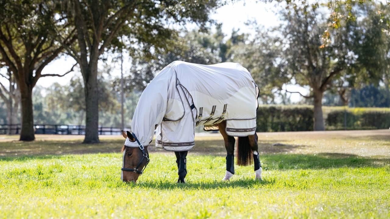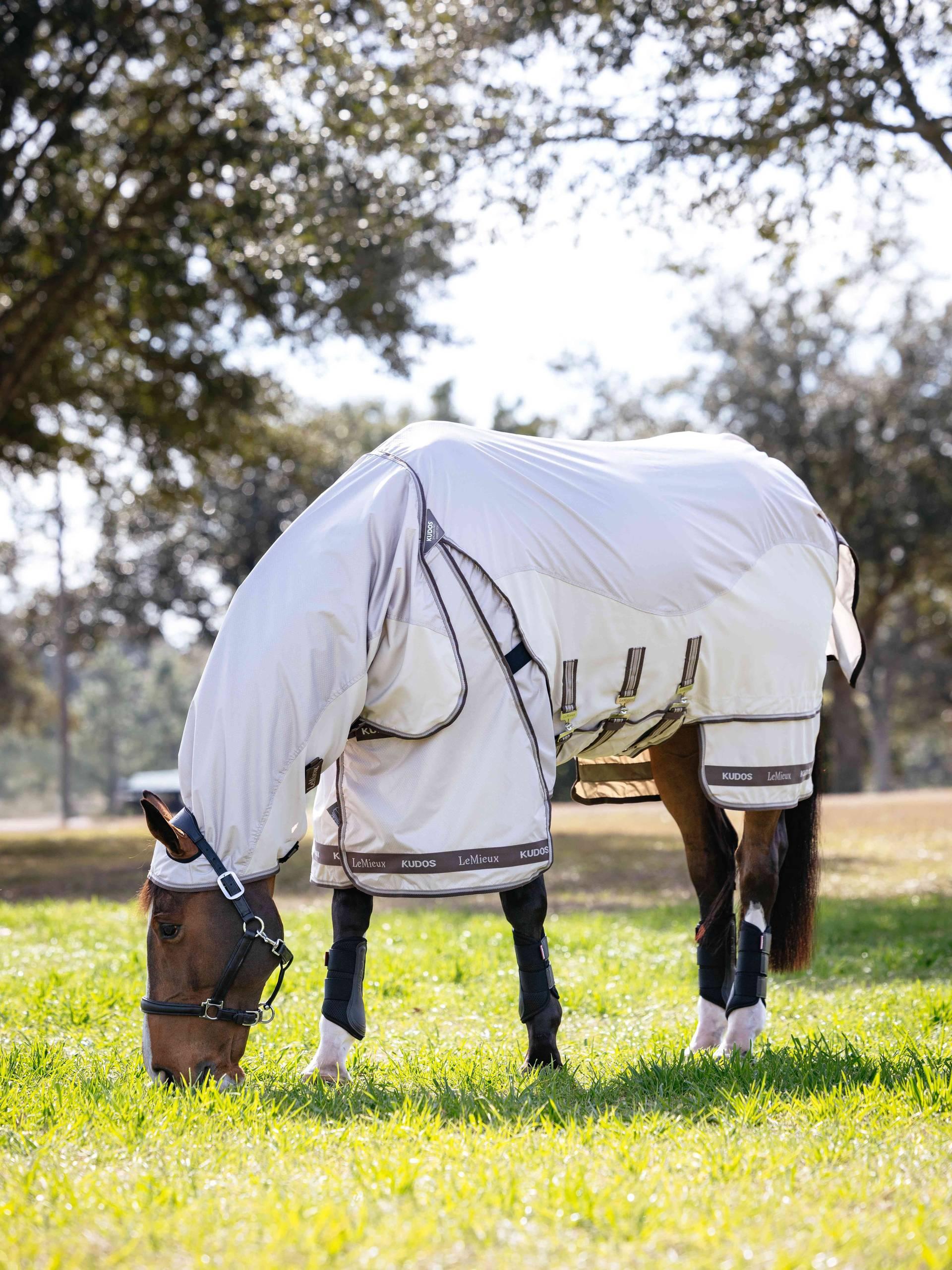 Designed with sweet itch protection in mind, it features extra poll, wither and top-of-tail protection, a waterproof topline and a breathable lightweight skirt with full coverage under the belly.