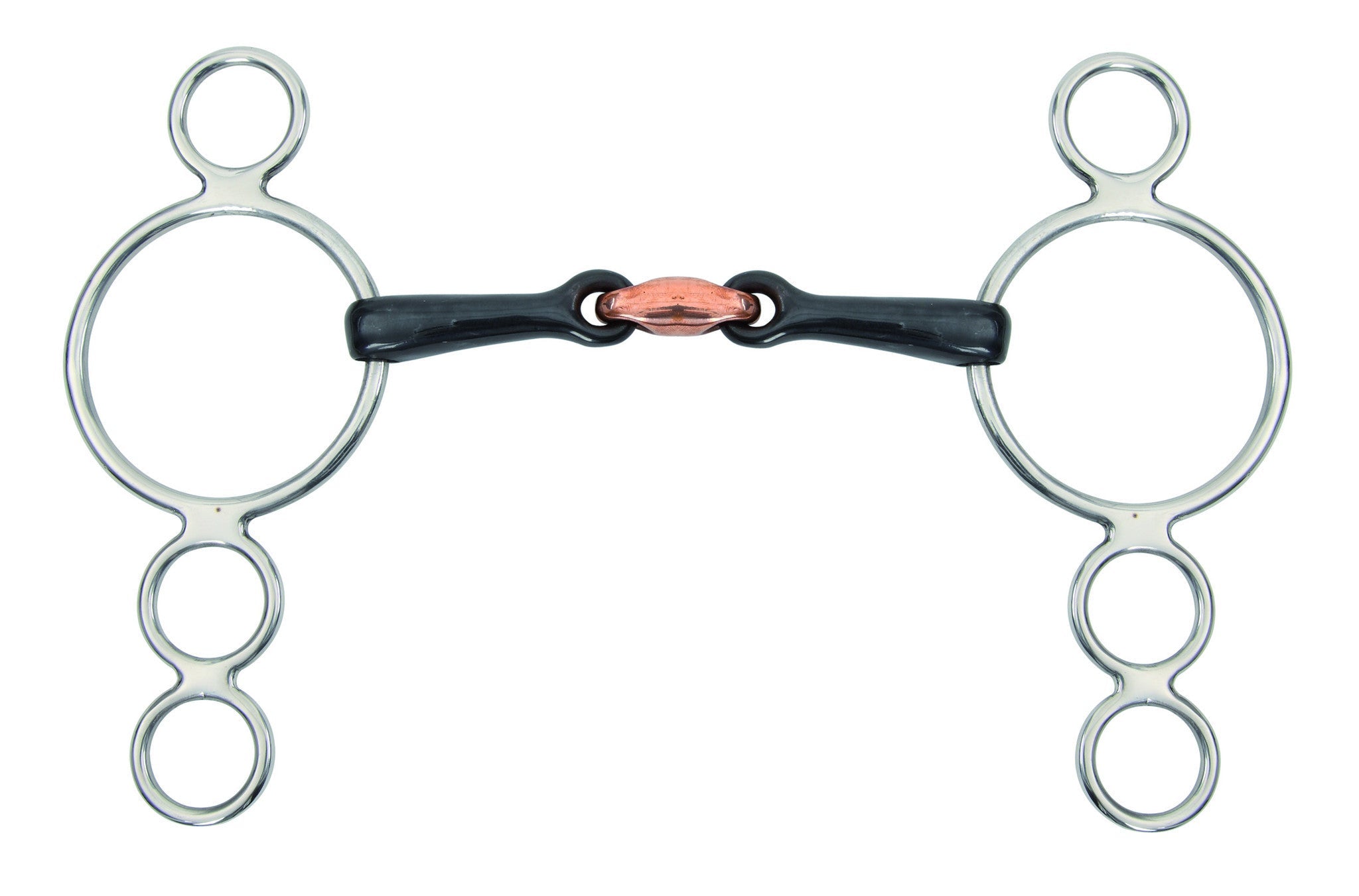 Sweet iron encourages salivation and produces a pleasant taste in the horse’s mouth. The copper lozenge adds warmth. Raised copper ribs can help to prevent the horse taking too much of a hold. The 5" and smaller sizes come with shorter cheeks to ensure the bit remains in proportion with the smaller head.