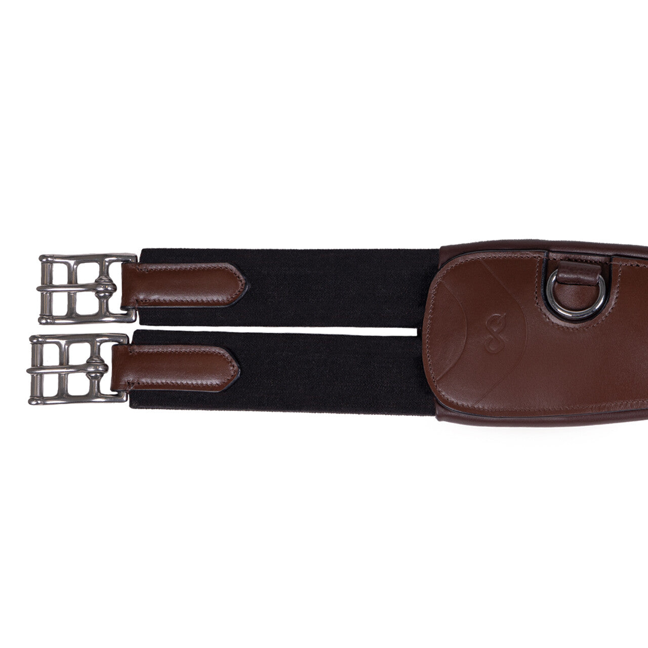 • The girth does not hinder the horse's movement of the foreleg. Its shape follows the curve behind the front legs, allowing more freedom of movement for the elbows. The additional space enables the horse to increase its forward stride.