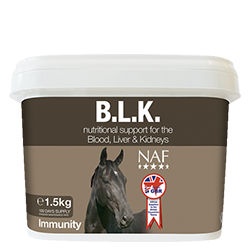 Formulated for the nutritional support of blood, liver and kidneys, the body’s own de-toxifiers and cleansers. At times of extreme challenge, the liver and kidneys can show signs of stress, which is often reflected in poor blood profiles. By targeting these organs with specific herbal support, such as milk thistle and dandelion, we can improve the horse’s diet and allow these organs to help themselves. BLK also includes scientifically verified, naturally sourced antioxidants to flush out the build up of free radicals within the system.