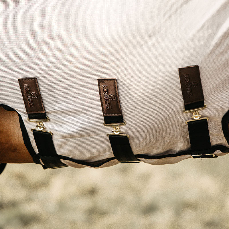 The soft colour in beige, will also help reflect the rays of sun so that the rug does not absorb the heat again helping to keep your horse comfortable through the day. The mane and chest area, plus the tail flap are lined with a smooth polyester and as a result prevents rubbing.
