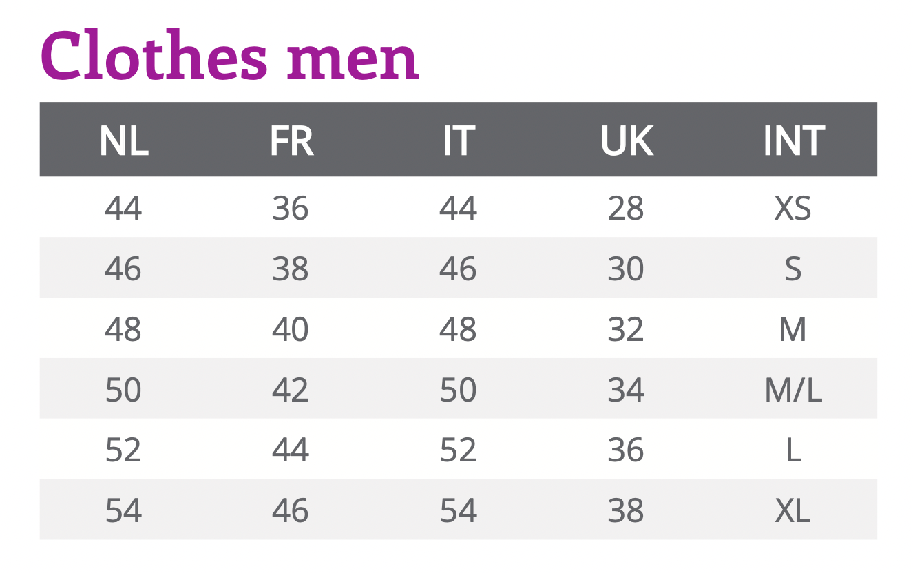 The model on the studio photos is 195 cm and wears size 46. Would you like to know which size is best for you? Take a look at the size chart.