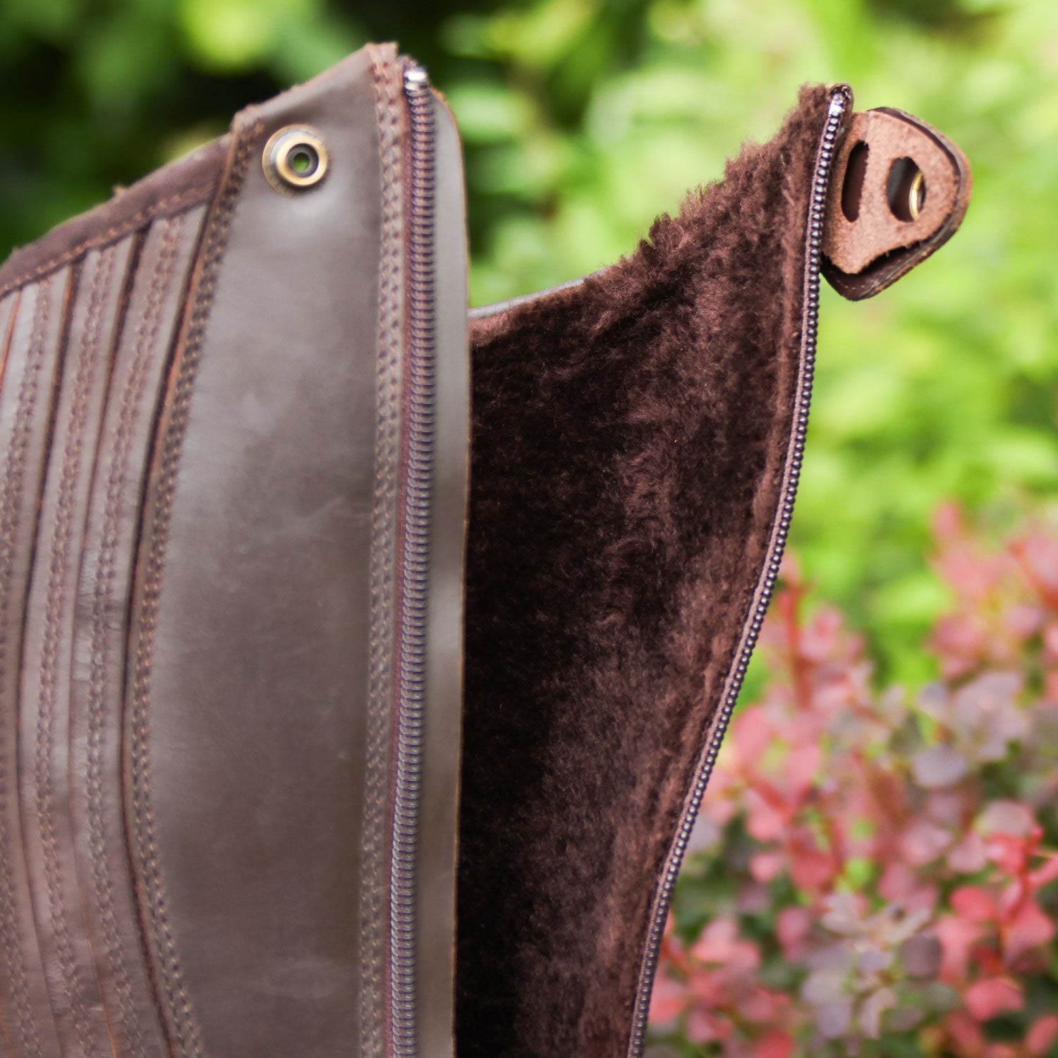 Made from extremely soft and supple oiled leather upper which is comfortable and moulds to the foot (oiled leather is naturally water and stain resistant). Features FL3 Tri-flex sole unit which flexes and moves with the foot for comfort when riding and walking, fully faux fur lined to trap body heat, covered elastic panel down zip for a close, flattering fit, top zip cover with popper stud and Italian Brogini badge, high-cut Spanish topline elongates the leg riding and walking.