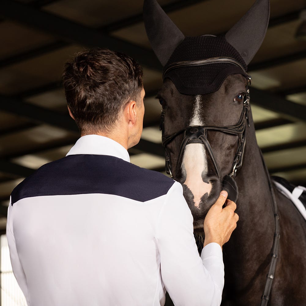 Engineered for year-round competition, the Men’s Penston Long Sleeve Show Shirt delivers performance, comfort, and style in one sleek package. Crafted from ultra-lightweight, four-way stretch fabric, it provides exceptional breathability and freedom of movement. The smart, long sleeve silhouette and contrast shoulder panel bring a refined, contemporary look ideal for cooler days or more formal settings.