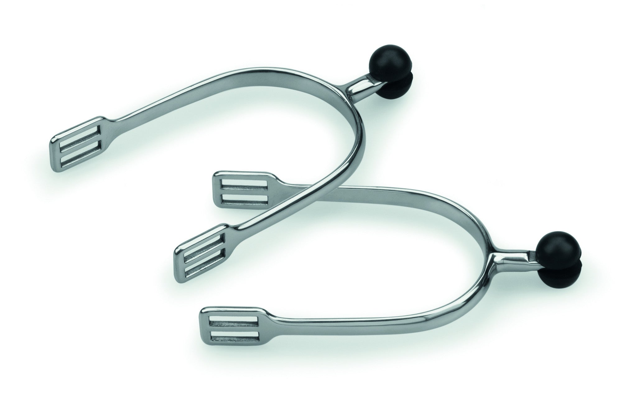 More gentle than a standard shank spur, the ball rolls rather than jabs and prevents marking. 30mm neck.