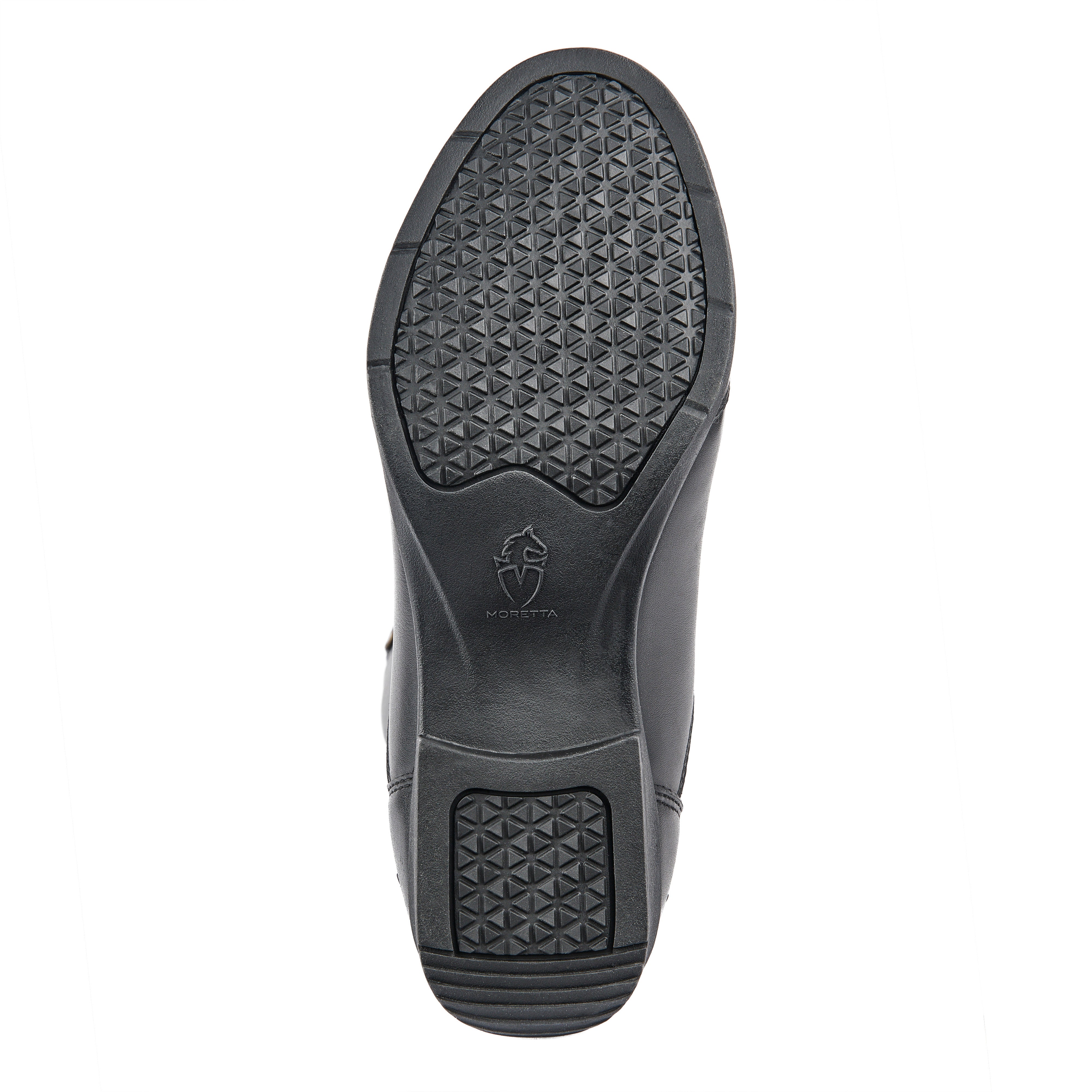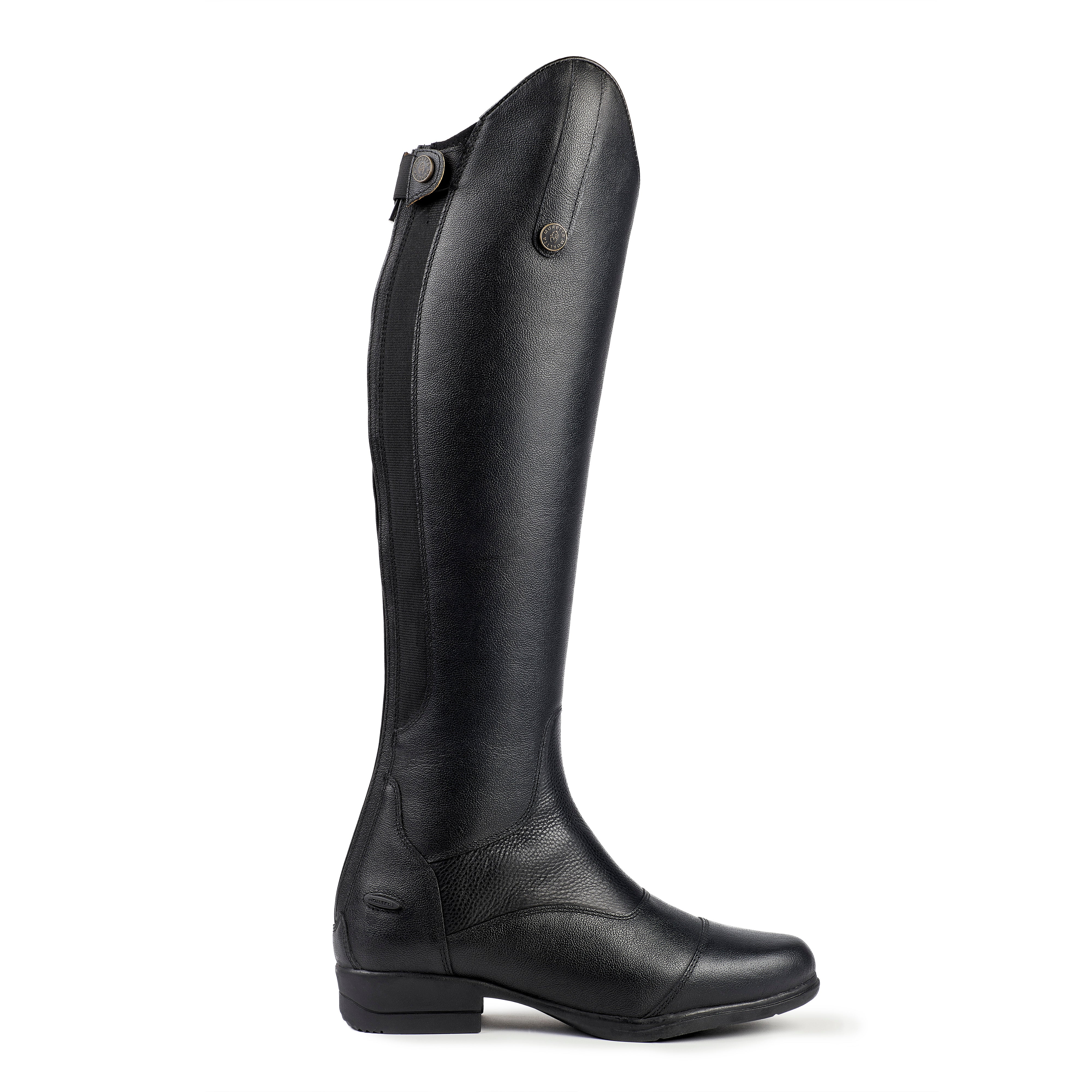 • A classy milled leather outer panel is combined with a nubuck inner calf for elegant looks with enduring appeal. The Carla long riding boot design is based on the popular Albina boots but with a sleeker front section. Full length stretch inserts achieve a neat leg fit and legs are kept comfortable thanks to the moisture control fabric linings. Supportive insoles and shock absorbing soles ensure feet stay energised in the stirrup. Key features: Milled leather. WickAway stay dry linings. Soft piqued leather inner trims. Nubuck calf grips. Dressage cut tops. UltraFit leg panels. YKK zips. Upper leather zip security tabs. Non-slip spur rests. ActiveFlex insoles with Impact Support System. Moretta shock absorbing rubber soles. Steel shanks.
