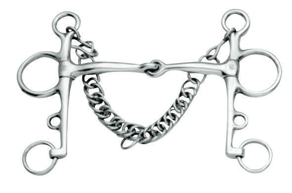 • The top rein provides snaffle pressure to the tongue and corners of the mouth, while the bottom rein increases leverage and curb chain pressure