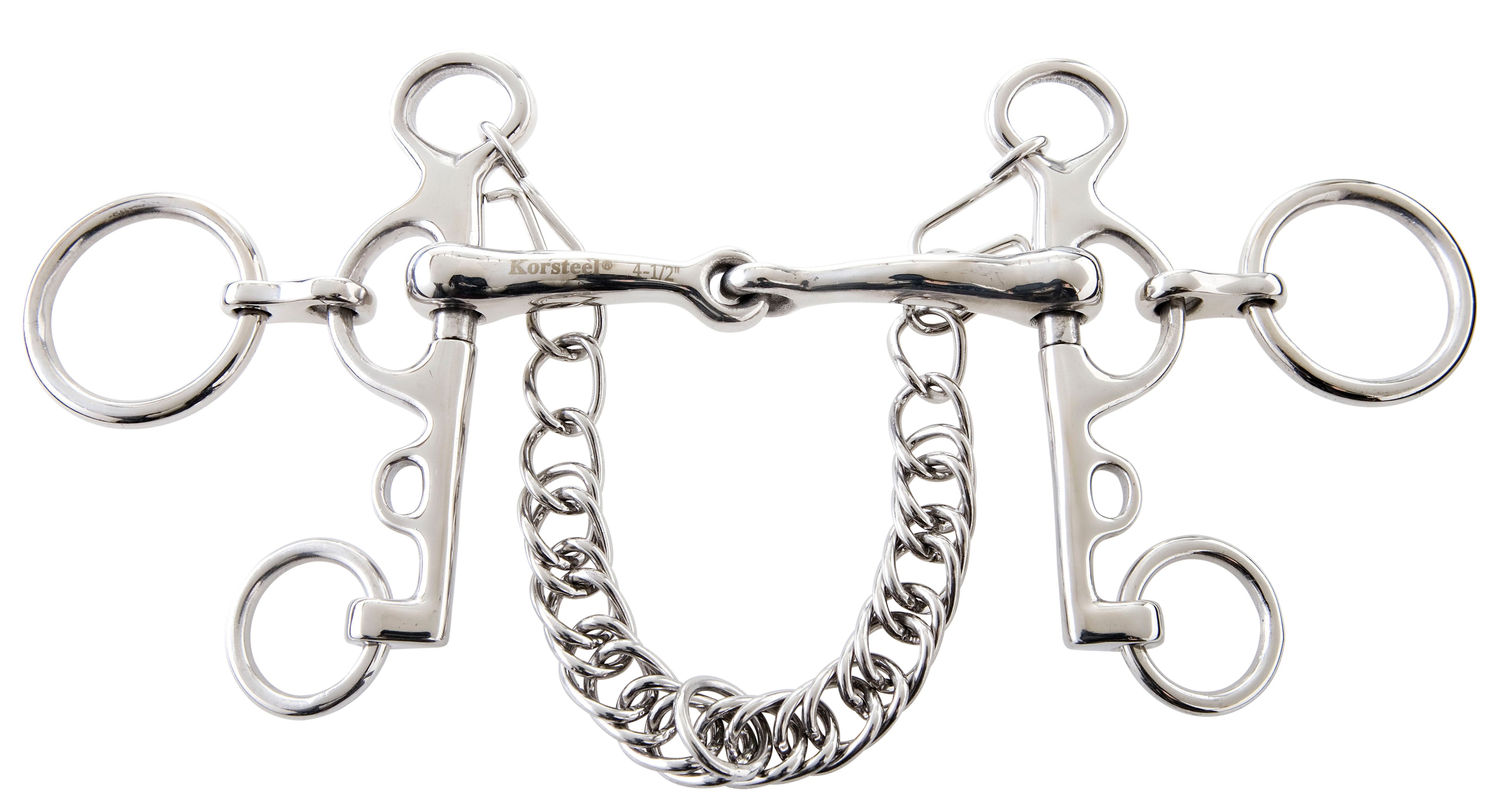 • The top rein provides snaffle pressure to the tongue and corners of the mouth, while the bottom rein increases leverage and curb chain pressure