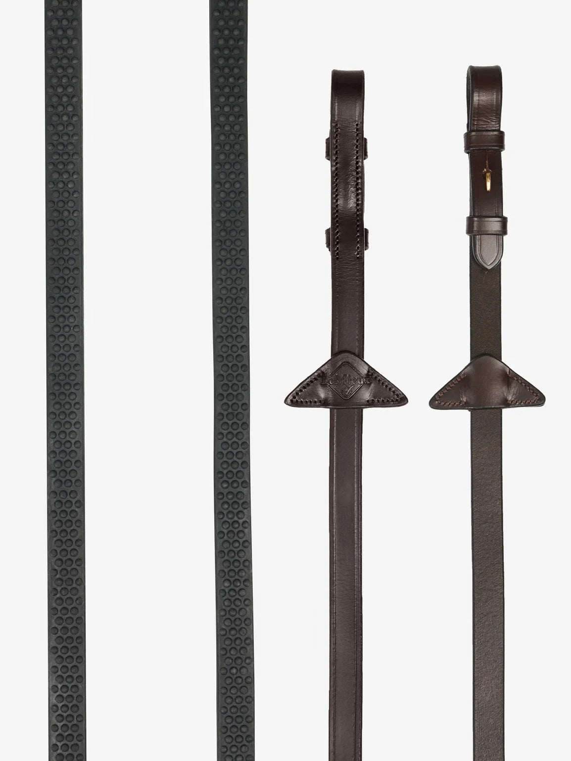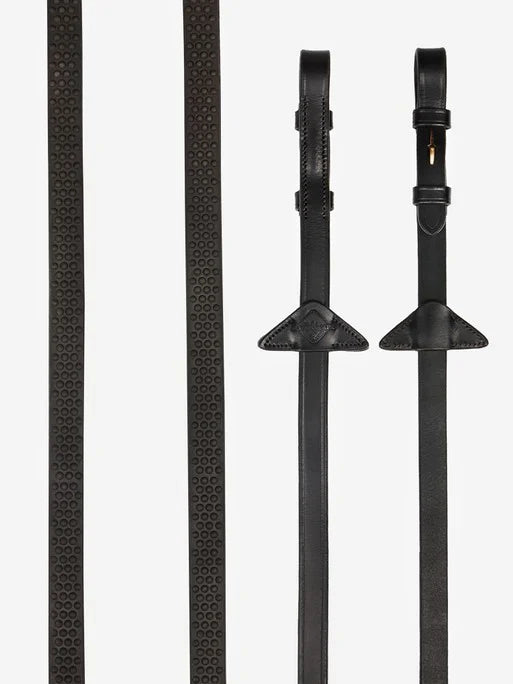 The LeMieux Soft Rubber Reins are beautifully soft and flexible reins that have a light feel in the riders’ hands. With raised pimple texture for additional grip and nylon lining to prevent stretching.
