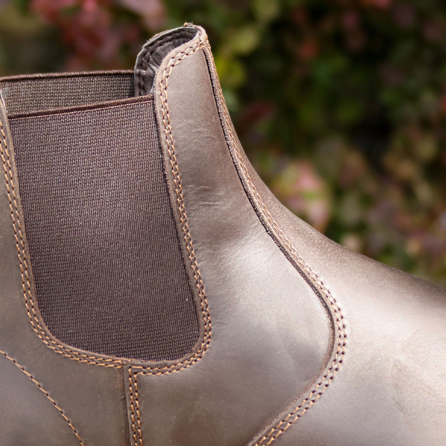 Tough and stylish, the Kingham boot is the perfect pull-on and go boot for both men and women. The waterproof oiled leather is naturally stain resistant and the multi-faceted rubber grip ensures traction in all weathers and on all surfaces. A pull-on style Chelsea boot with leather heel puller featuring a rustic contrast cream stitch, smooth moisture wicking lining, large elastic side panels are supportive and comfortable, unisex design suitable for yard, field and town.