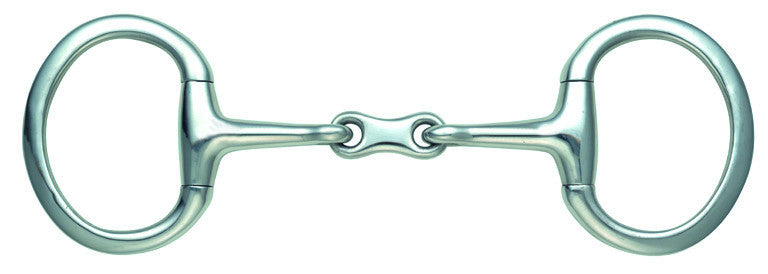The French link in this bit means pressure is applied to both sides of the tongue. Some horses with low palates may find this bit more comfortable as the mouthpiece should not contact the palate when the bit is in action. The smaller sizes of this bit come with smaller rings to ensure the bit remains in proportion.
