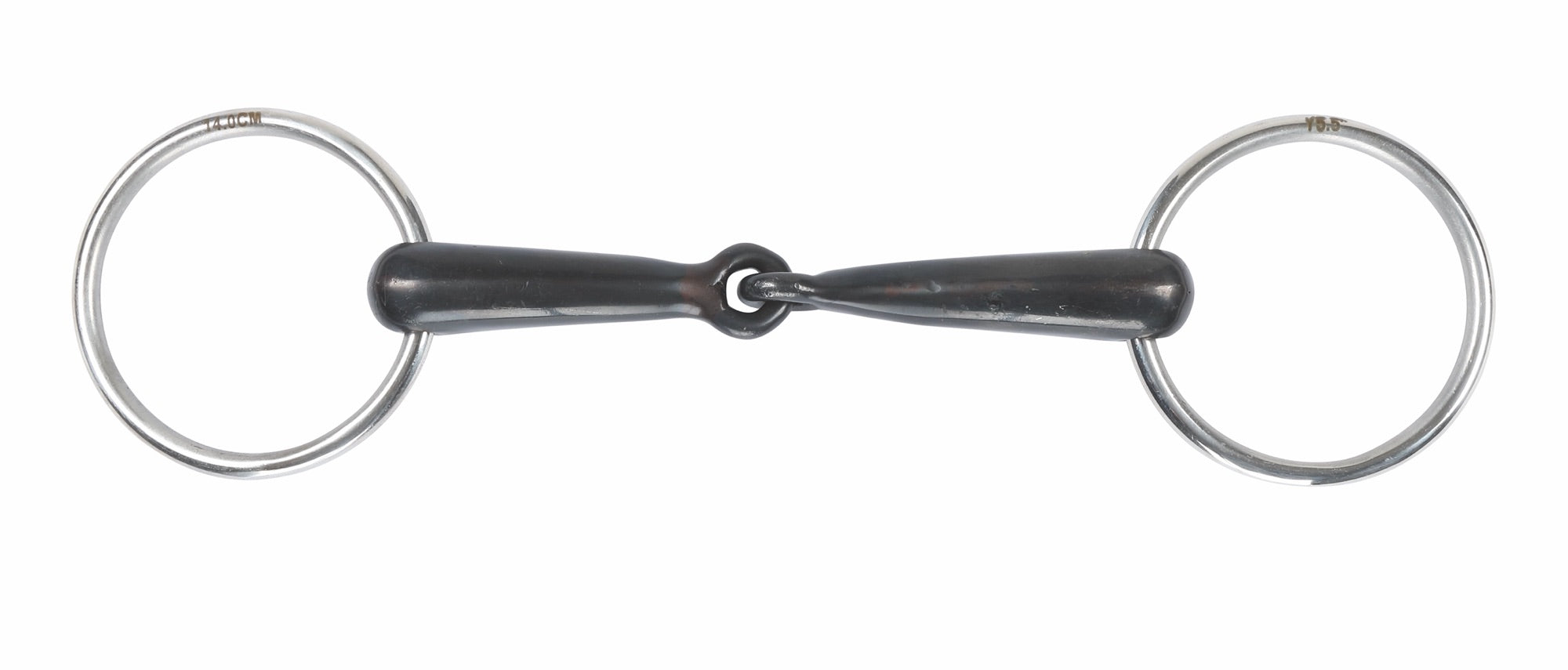 This loose ring cheek can discourage fixing as it has much more movement than a fixed cheek. The hollow mouth is significantly lighter than those with a solid mouthpiece. Mouthpiece thickness: 18mm. Cheek height: 50mm (4.5", 5"), 65mm (5.5", 6"). Sweet iron mouthpieces are designed to oxidize to produce a sweet taste which helps with mouthing. Stainless steel is used for the cheeks due to it being durable, easy to clean and resistance to rust.