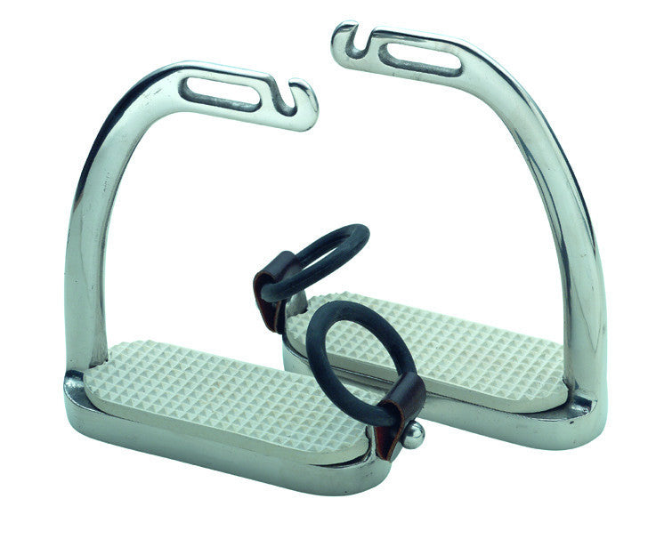 Designed primarily with children in mind, these safety stirrups have a thick rubber band which will detach easily for greater safety. Made from stainless steel with a high quality finish and complete with stirrup treads.