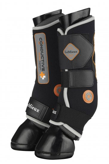 The LeMieux Conductive Boots herald a new approach to magnetic therapy. Unique inner liners contain a woven layer of steel fibres directly under 18 powerful 2600 gauze magnets. The steel filaments conduct magnetic waves evenly around the lining bringing the whole leg within the magnetic field