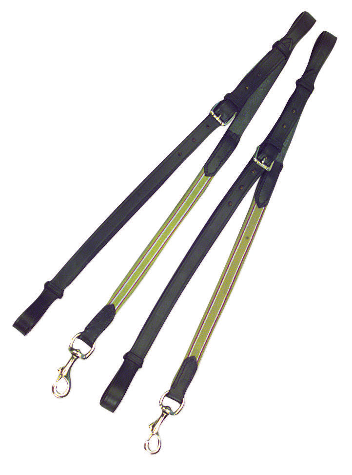 • Leather Elastic Side Reins from Kincade are made from quality leather and have elastic for freedom of movement. The reins feature a buckle adjustment and a trigger clip fastening.
