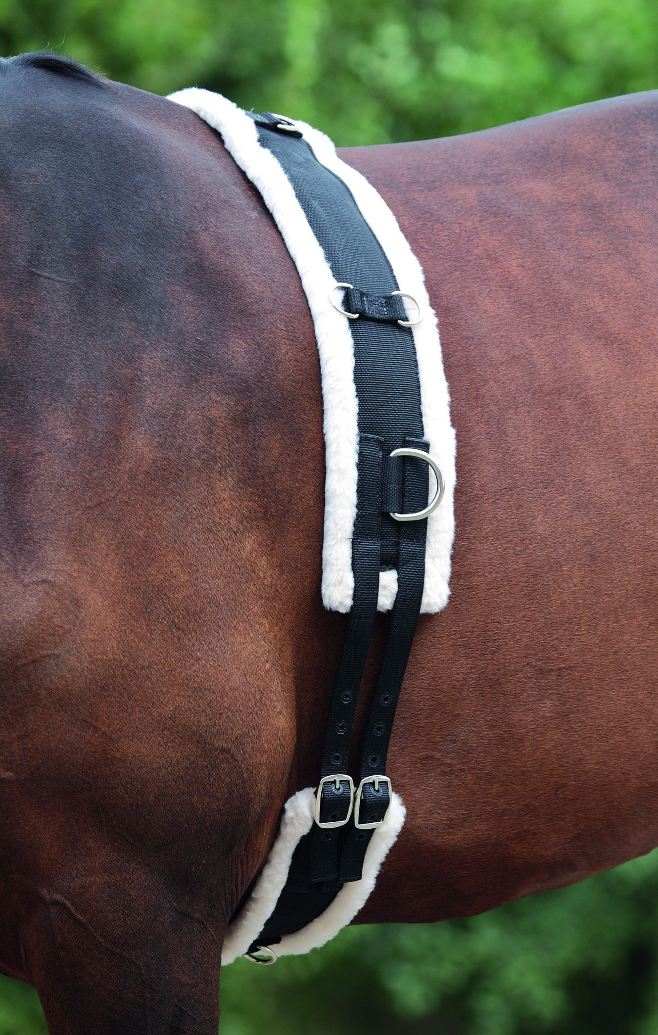 Nylon roller with 11 D-rings, fleece lining across the top and a girth that is adjustable on both sides.