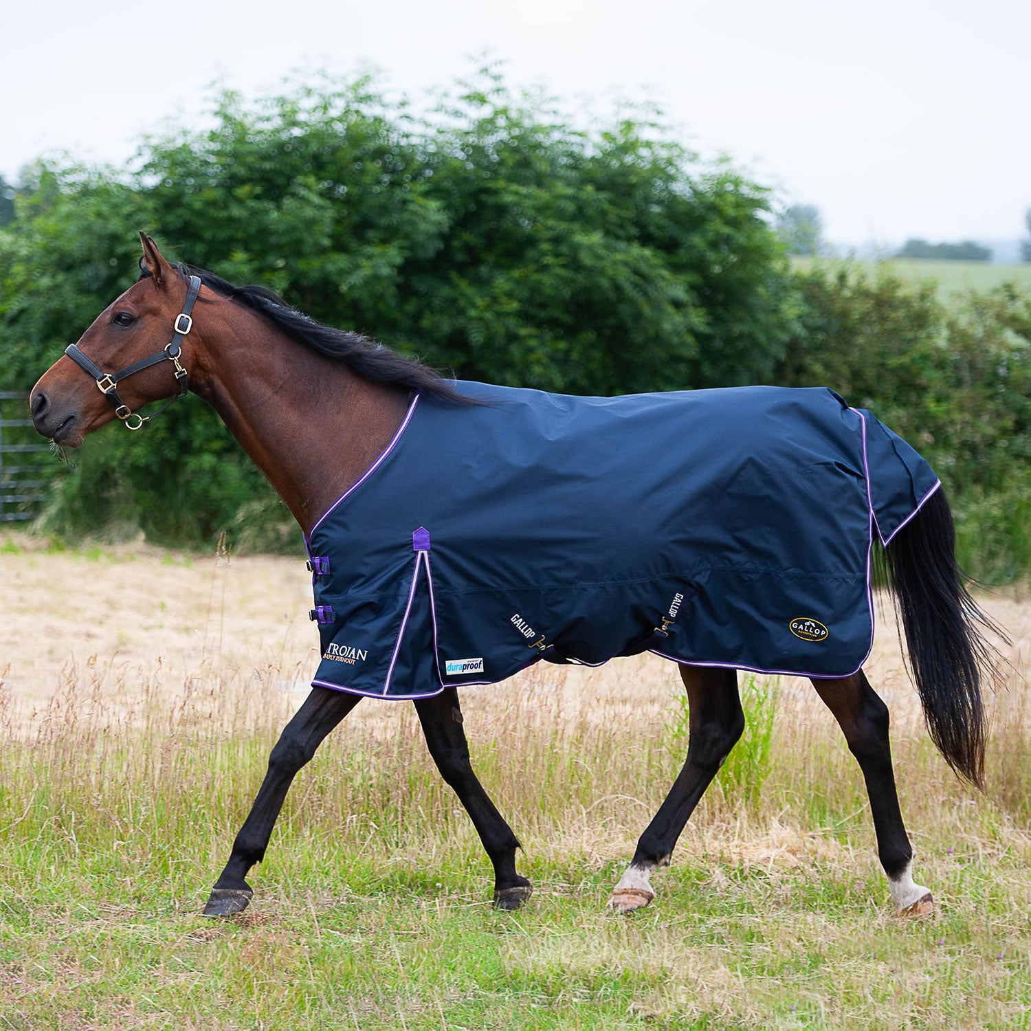The fit is super for all shaped equines due to its generous shoulder pleat, fully adjustable front straps and surcingles. The umbrella tail flap also provides good coverage to ensure the top part of the tail is protected from the rain and winds. Elasticated leg straps are a great way of keeping the back quarter of the rug securely in place covering the quarters of the pony, but in the event of an accident these will safely breakaway. An excellent everyday rug that is an essential part of your pony's Spring/Summer wardrobe or even as a top rug during the Winter months to keep your heavier rugs clean. With the extra addition of 5-point attachments, giving the rug a multi-use functional purpose from a standard neck to a combo. Featuring a 600D ripstop outer, a waterproof material up to 10,000mm rating, breathable to 3,000gm, nylon signature lining, crossed surcingles, elasticated detachable leg strap, full protection tail cover, shoulder pleat to reduce rubbing and double buckle breast fastenings.