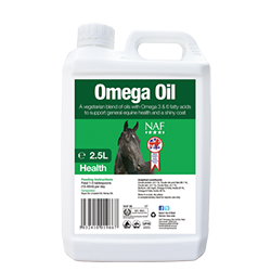 Feeding oil is an established part of many equine diets. Increasingly oil is being used as part of the energy quotient of the diet, and the superior quality and fatty acid profile of Omega Oil makes it ideal for this purpose. Omega Oil provides slow release energy that is efficiently metabolised by the horse and is particularly recommended as a source of energy for performance; such as eventing, high level dressage and endurance. When changing the diet to include high levels of oil it is very important to build the amounts up gradually to allow time for the horse's metabolism to adapt. When feeding an oil rich diet it is recommended that the oil is balanced with antioxidants; D-Tox or Vitamin E Selenium and Lysine are ideal for this purpose.