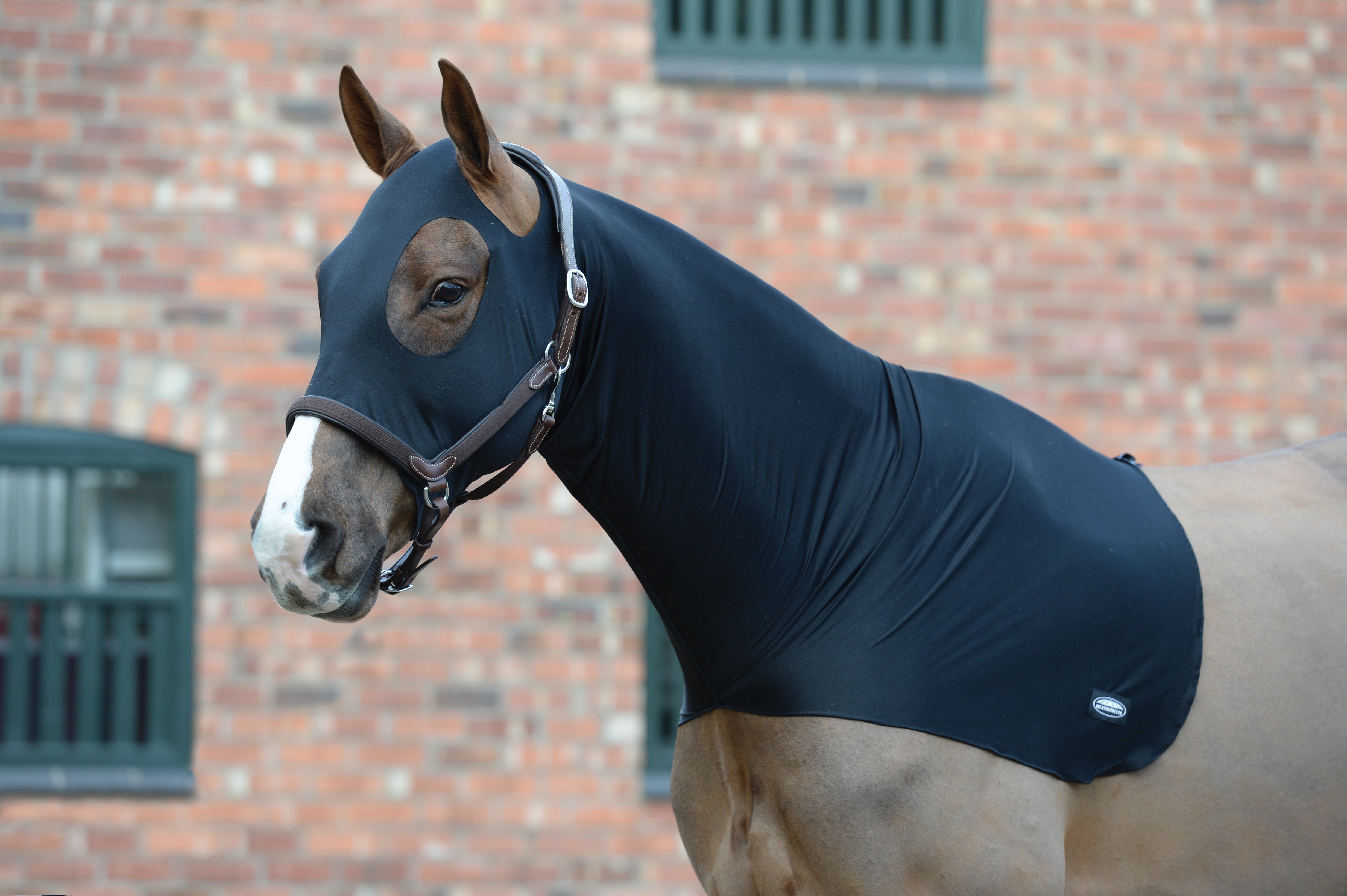 • The WeatherBeeta Stretch Hood for horses is perfect for keeping your horse clean and tidy, protecting braided or un-braided manes. This stretch hood offers a four way stretch fabric that is lightweight, comfortable and provides a snug fit. A pull on style that has large opening for eyes and ears and is machine washable at a low temperature for easy cleaning!