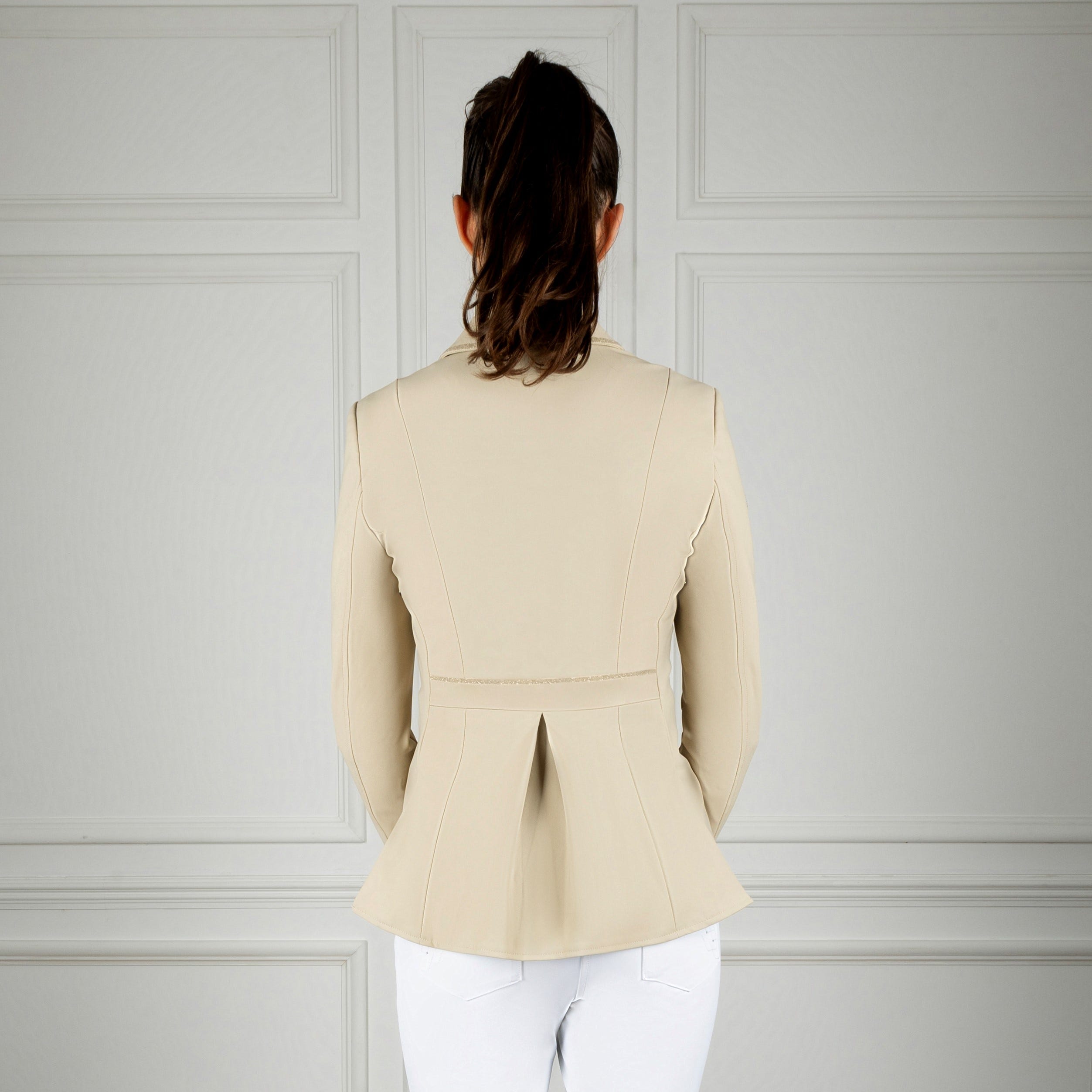 • For elite performance, serious equestrian athletes wear the Ledmore Diamante Show Jacket. A fusion of both glamour and advanced technology to improve performance in the ring. Crafted using an innovative, eco-friendly textile made from recycled plastic bottles, reducing the amount of waste going into landfill.Modern technology has been used to create a show jacket that offers an elegant silhouette whilst simultaneously utilising quad-stretch motion for unrivalled flexibility. The technical, lightweight fabric has moisture wicking properties for complete breathability in addition to water-resistant engineering.The innovative jacket features premium diamantes and glitter detailing on the collar and pocket, along with the iconic Coldstream logo on the sleeve. Strategically placed tonal stitching and subtle rear and under arm vents create a stylish yet ventilated piece.